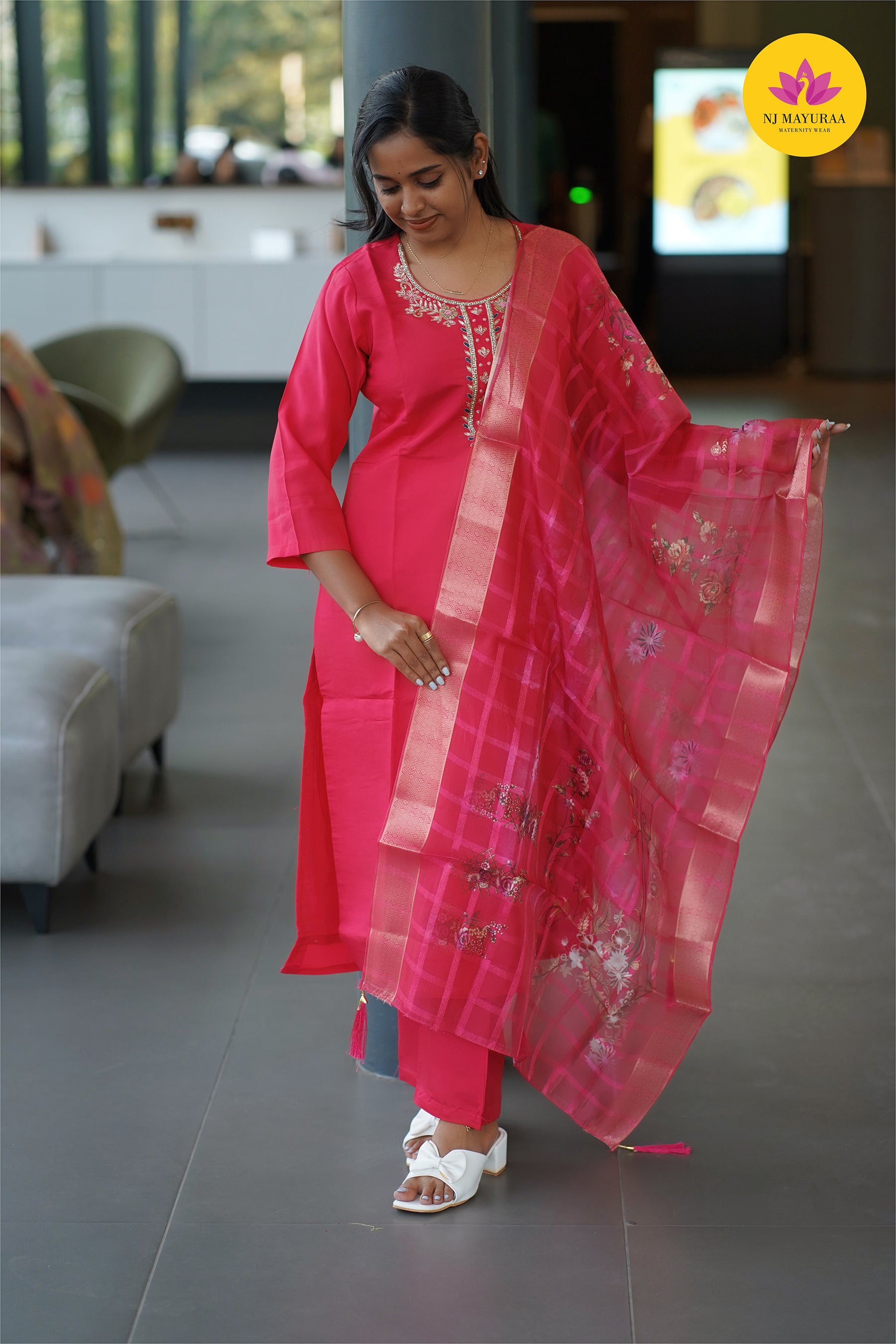 Jaya19-kurti 3pcs set ( top & pant with dupatta) Non feeding