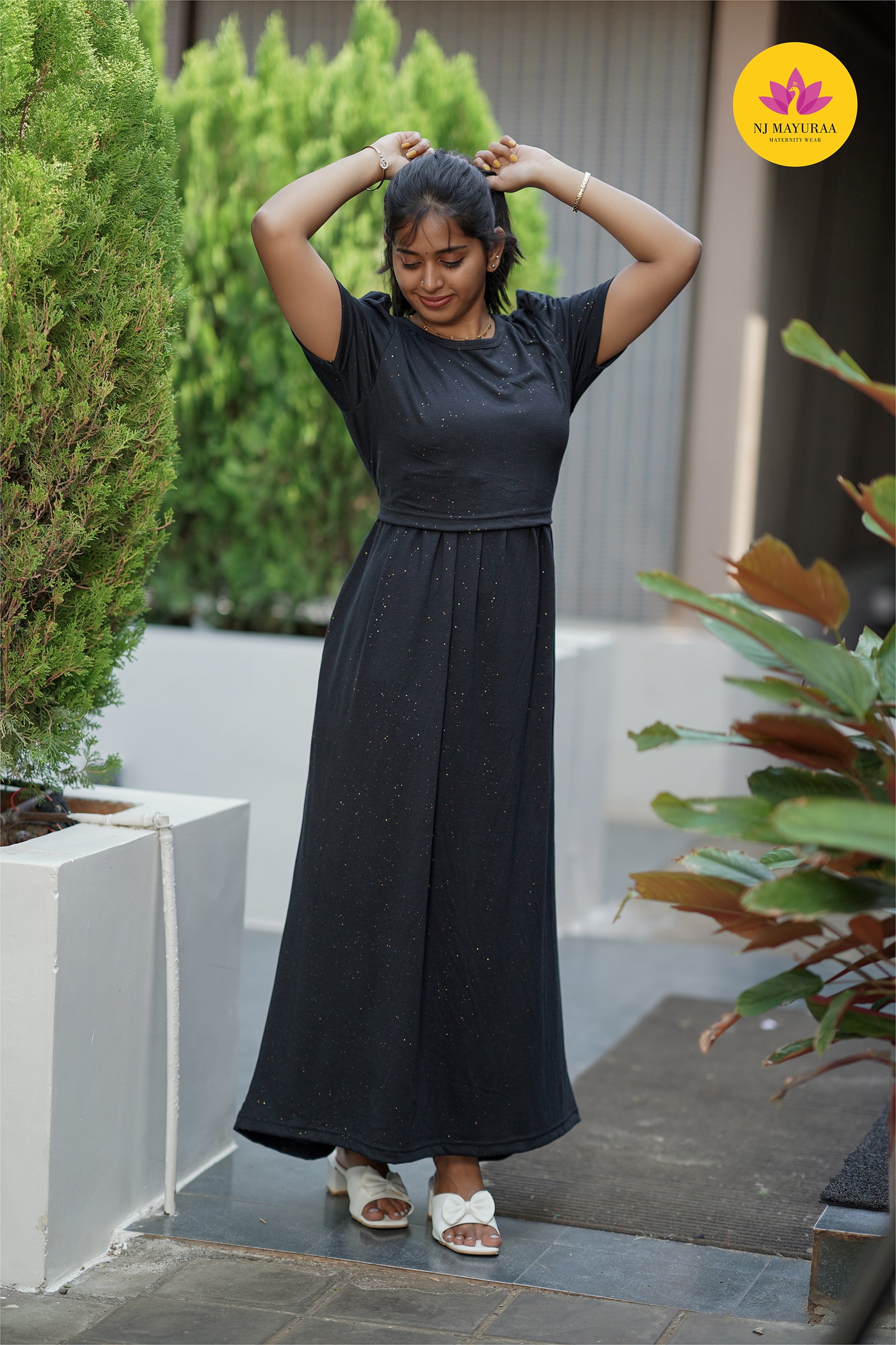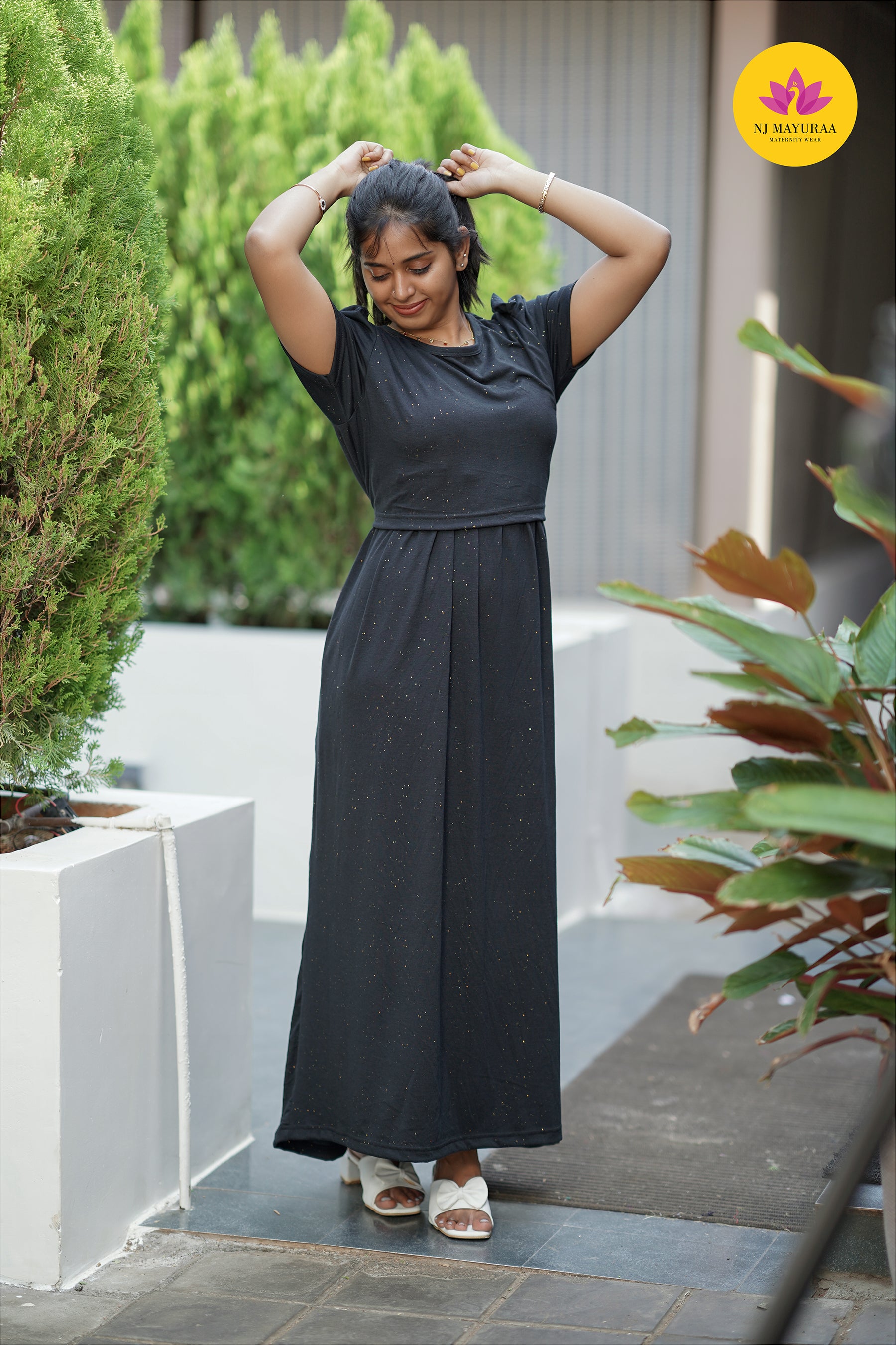 Valli 61 Glitter Fabric gold πͺ ZIPLESS MATERNITY WEAR PUFF SLEEVE